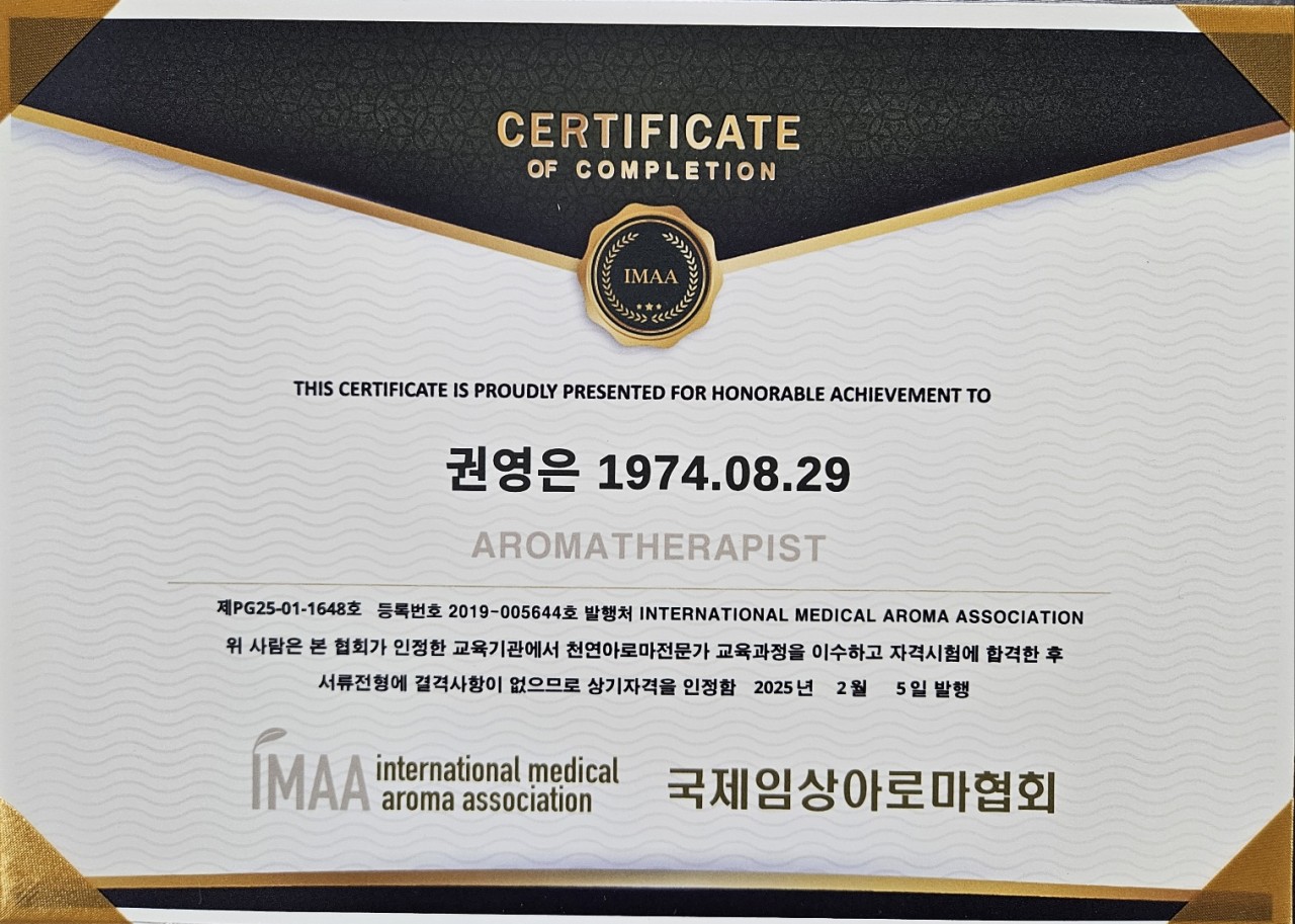 IMMA 국제 아로마 자격증 취득!!