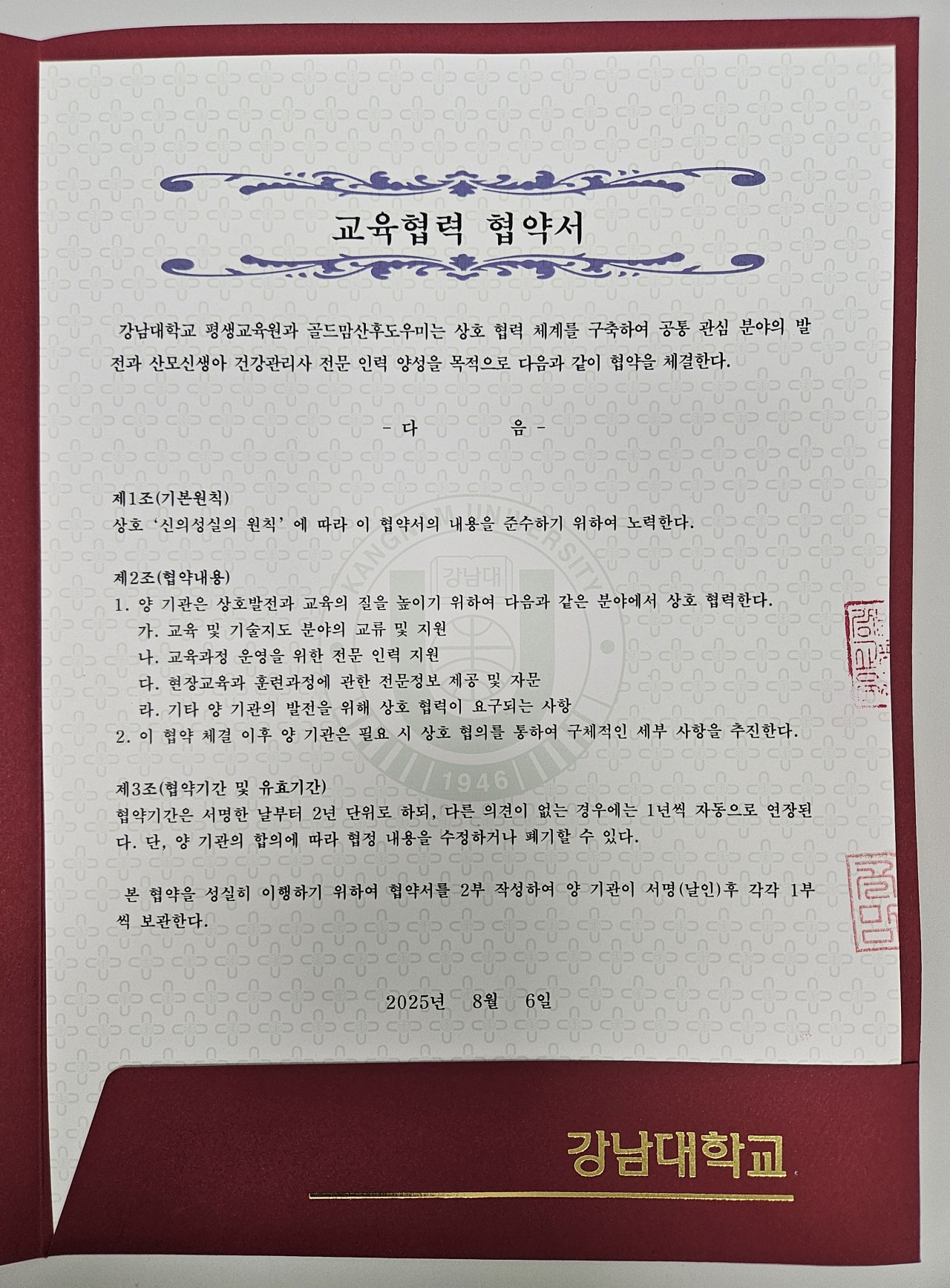 강남대와 교육협력 협약서 체결!!